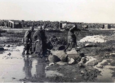 The following day again we had the same mission and the same territory and then we really had some excitement. We got to our O.P. and noticed a German horse-drawn artillery convoy come into view and with a telephone set up in a machine gun nest next to us we called for artillery and fired the mission ourselves. We caused quite a bit of damage but couldn’t see the results too clearly and just about the time we were through, all of a sudden, blam blam blam Jerry artillery came in on our O.P. I hit a dugout along with another boy in a flying dive and I do mean we dived. We got there to find 4 men already occupying a two-man dugout. But you can be sure, my darling, that we all managed to find some room. Sweetheart, I was really scared this time and no two ways about it, if anybody ever tells you that they were ever under artillery and didn’t become scared then they are either liars or else were not too close to the artillery. About 20 shells hit the O.P. and I really prayed when I got home that night.