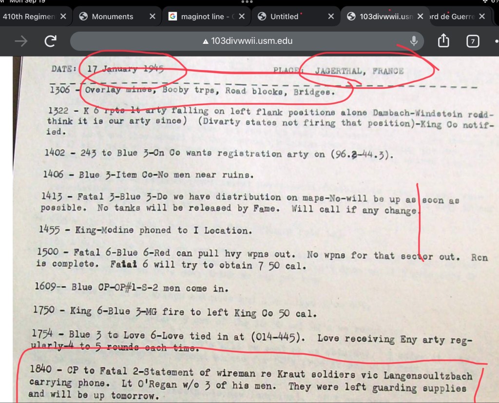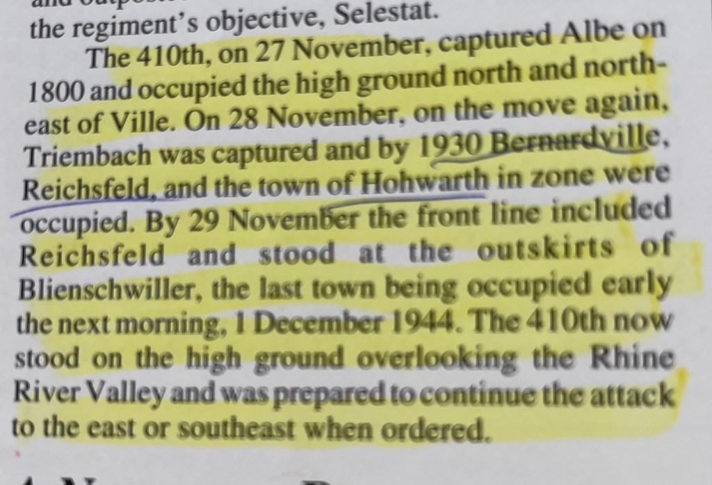 When I returned to my room, I was re-reading some of my reference material on the Vosges Mountains area of combat and, of course came across this: