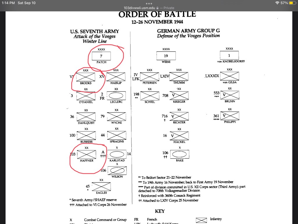 The travels are moving faster than I can report. let me back up a bit and hit on a couple of contextual issues for followers. First the composition of the 103d Infantry Division.